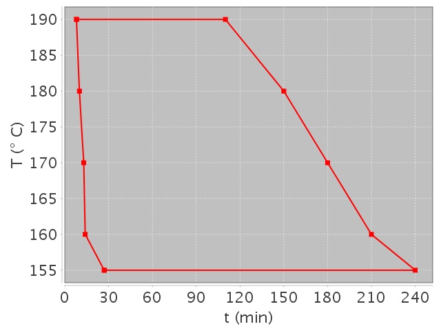 | Härdningsbetingelser | 27-240 min @ 155°C 14-210 min @ 160°C 13-180 min @ 170°C 10-150 min @ 180°C 8-110 min @ 190°C |
